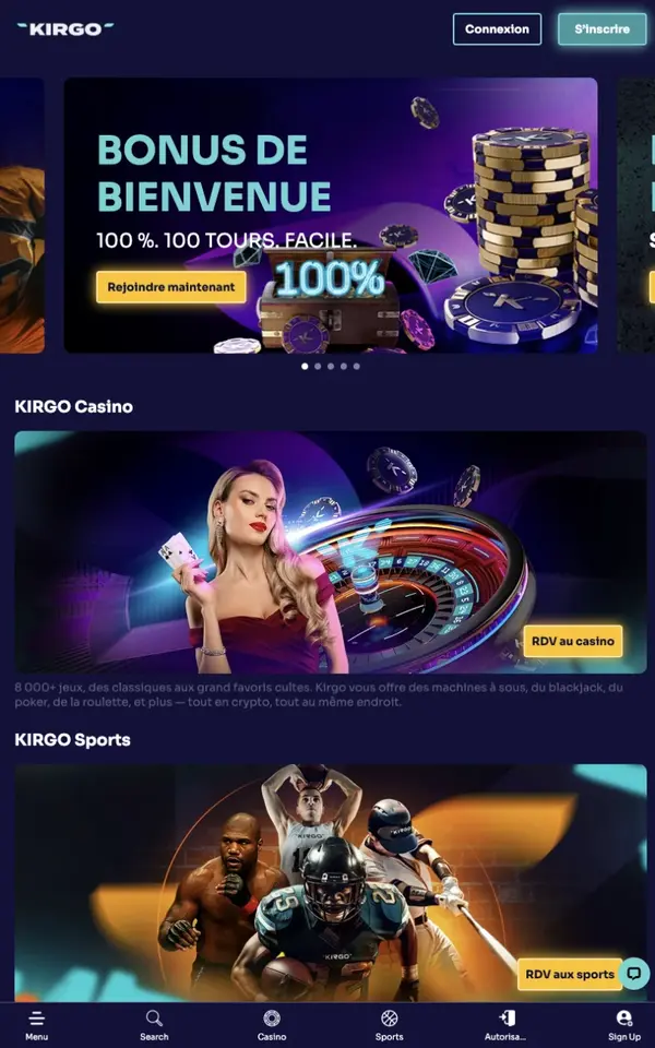 Cette page explique comment Kirgo Casino fonctionne sur téléphones et tablettes pour les joueurs au Canada. En déplacement, vous pouvez parcourir les Kirgo slots, rejoindre des tables avec croupiers en direct, ou utiliser notre sportsbook avec un seul compte. Si vous comparez des options pour casino Kirgo Canada, vous trouverez ci-dessous les détails des paiements en CAD, les conditions de bonus et les contrôles de sécurité. Pour un accès rapide, de nombreux joueurs enregistrent un raccourci façon Kirgo mobile app sur leur écran d’accueil. Sur KirgoCasino, notre équipe d’assistance est disponible via le chat en direct et à [email protected].